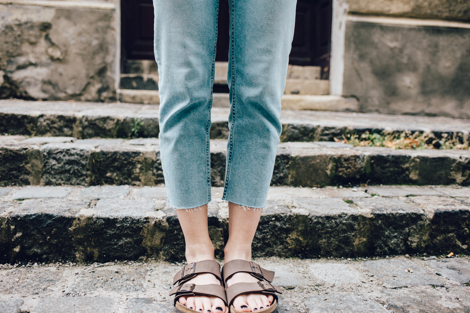 Als ich vor vier Jahren aus den USA zurück nach Österreich gezogen bin, hat es mir an frozen Acaí und Urban Outfitters gefehlt. Seit ein paar Jahren erhaltet man ersteres in österreichischen Shops und seit Ende Juli gibt es auch endlich einen Urban Outfitters Store in Wien. HALLELUJA Und das auch gleich neben meinem Yoga-Studio. Gut für mich, schlecht für mein Bankkonto. 🙂 Heute zeige ich euch meine erste kleine Errungenschaft: eine Mum-Jeans in 7/8 Länge. Perfekt für den Sommer. Ich hab mir die Hose vor einer Yoga Stunde gekauft und hatte keine Zeit sie zu probieren. Umso mehr war ich dann erstaunt, wie gut sie passt. Kombiniert habe ich die helle Jeans mit einer weißen Bluse und einer gelben Retro-Sonnenbrille. Birkenstock für den Komfort und aufgepeppt wird der Look mit silbernen Schmuck.